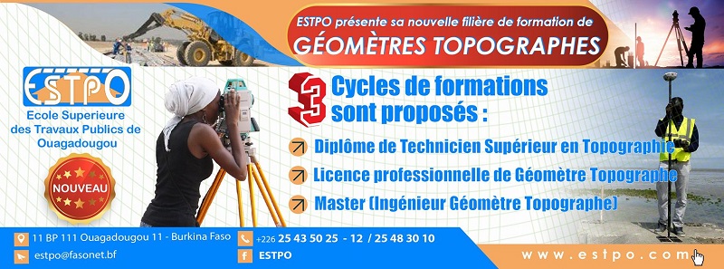 Les cadres formés à l’ESTPO sont donc en train de se répandre dans toute l’Afrique, à la grande satisfaction des administrations publiques, des entreprises et des bureaux d’études du secteur du bâtiment et des travaux publics, faisant de l’Ecole Supérieure des Travaux Publics de Ouagadougou une référence en Afrique de l’Ouest et du Centre.